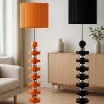 La Lámpara de Pie Geometría Pop es una pieza escultural que aporta un toque de alegría y vanguardia a cualquier espacio. Su diseño se inspira en el arte Pop Art y la arquitectura moderna, con una columna central formada por una llamativa secuencia de discos planos de cerámica artesanal apilados, separados por esferas de metal cromado brillante.