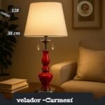 su base está elaborada con cerámica de alta calidad y detalles con acabado cromado. La luz se filtra elegantemente a través de una pantalla de organza, creando un ambiente cálido y sofisticado. Es un lámpara que resalta por su diseño único y la calidad de su mano factura hecha a mano en Uruguay.